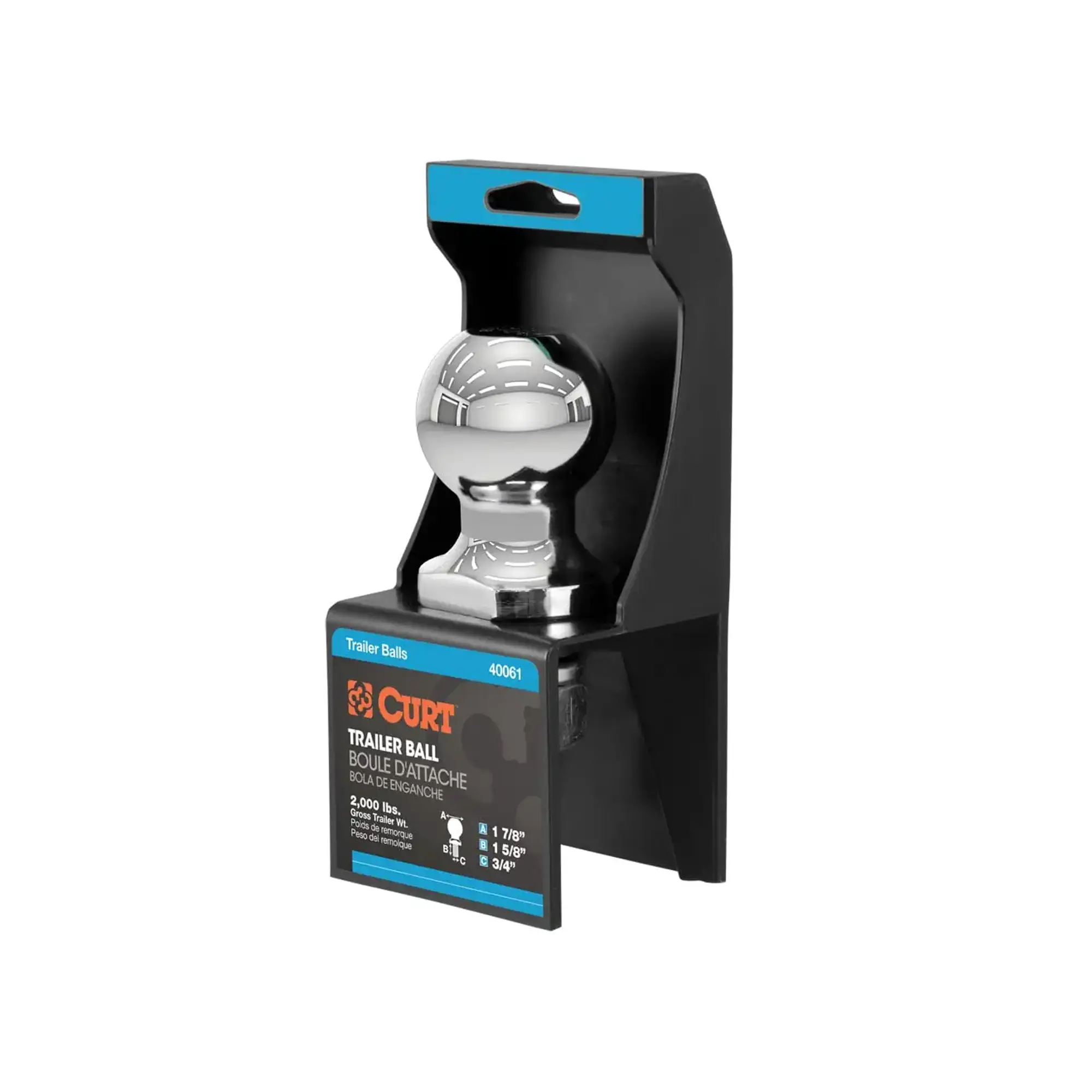 1-7/8″ TRAILER BALL (3/4″ X 1-5/8″ SHANK, 2,000 LBS., CHROME, PACKAGED) #40061