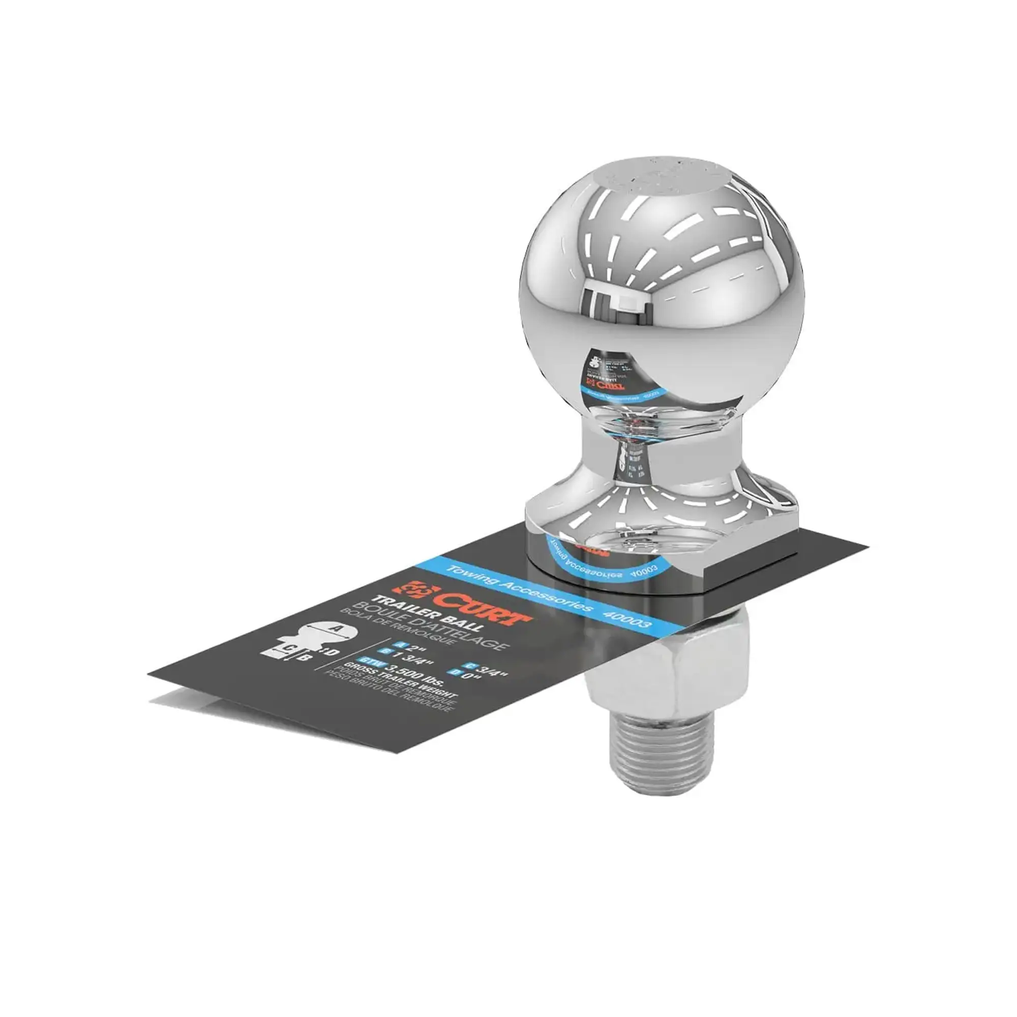 2″ TRAILER BALL (3/4″ X 1-3/4″ SHANK, 3,500 LBS., CHROME) #40003