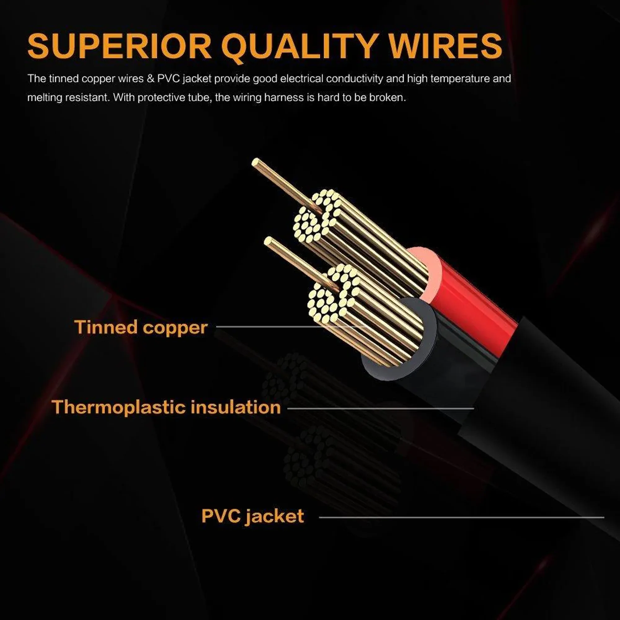 Please pay attention to the operating circumstances. Keep the wiring harness away from any moist or heat, such as rain, moisture environment, electro-heat equipment (engine and etc.)