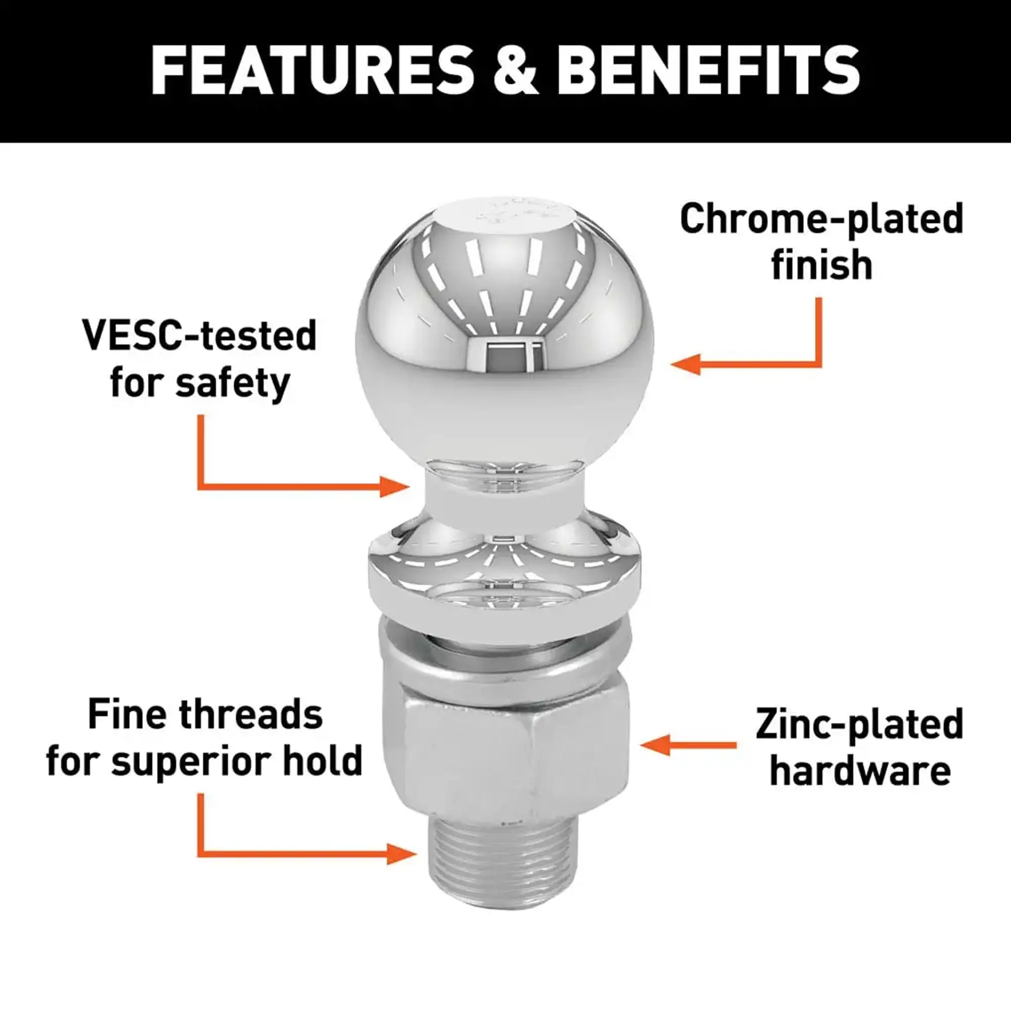 CURT trailer balls are engineered for durability, ease of use, and dependable towing performance. Crafted from high-quality steel, this 2″ trailer ball fits your coupler precisely, making it ideal for utility trailers, boat trailers, campers, livestock trailers, and recreational vehicle trailers. Perfect for Class 3 or Class 4 hitches on most pickup trucks and SUVs.
