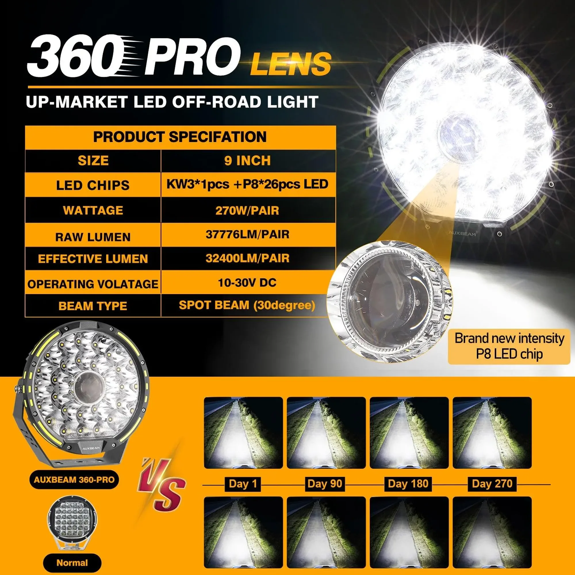 • Upgraded 360-PRO series, effective lumen reaches 37776LM illuminate maximize down road visibility to ensure your driving safety at night.