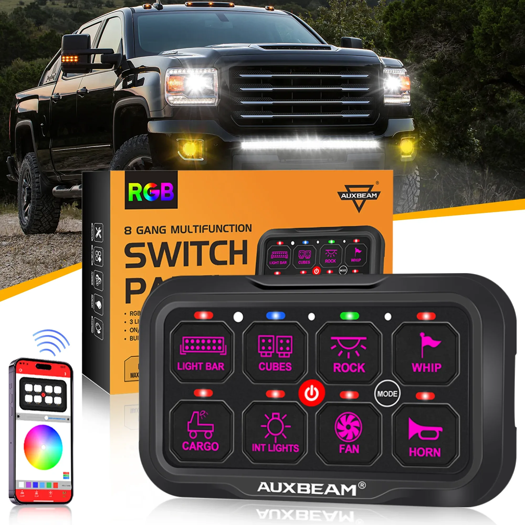 - 8-Gang one-sided outlet switch panel. It allows you to control up to 8 different LED lights or devices. Command all your vehicle accessories by the tap of your finger.