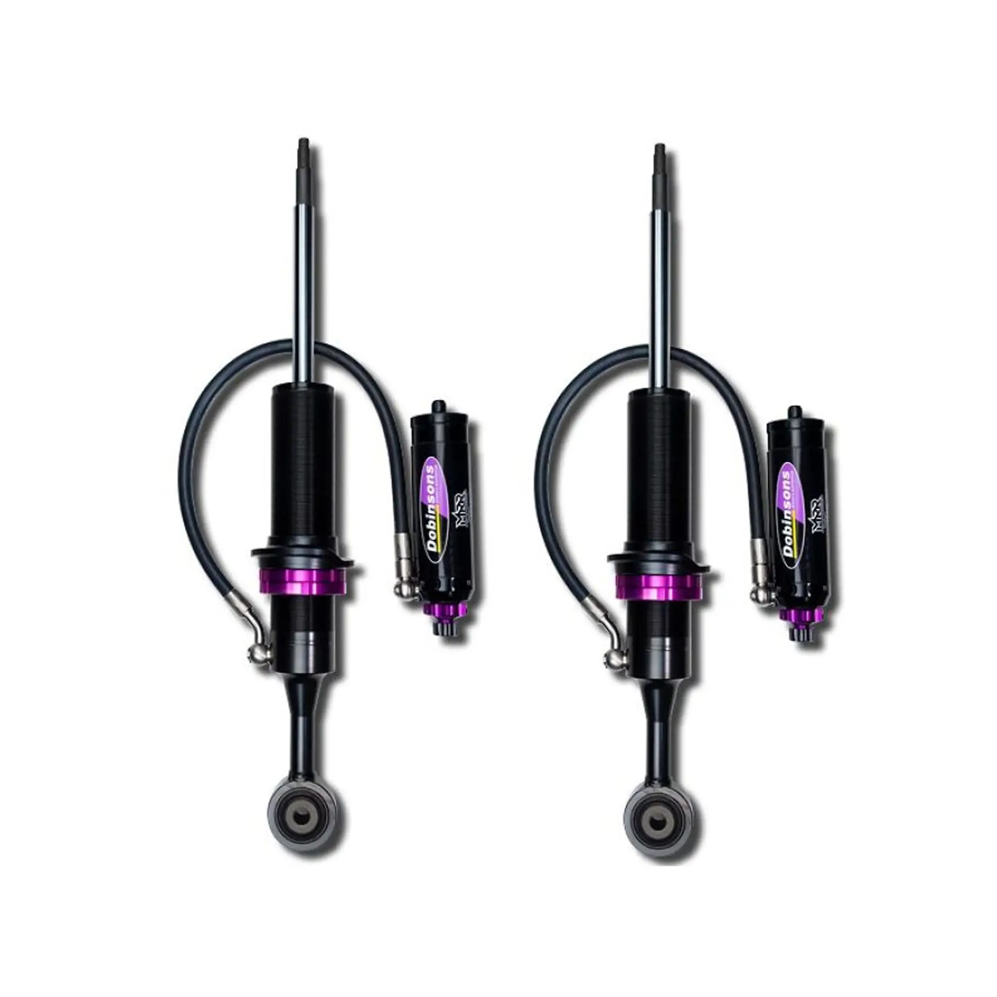 Dobinsons MRA59-A688 Front Adjustable Struts for 2008–2021 Land Cruiser 200 Series offer 0–3″ lift with race-bred monotube design. Features 3-way on-the-fly damping, CNC aluminum pistons, hard-chromed shafts, and large-bore remote reservoirs for heat-resistant, fade-free performance. Includes bushings, washers, and brackets; coil springs and top mounts sold separately.