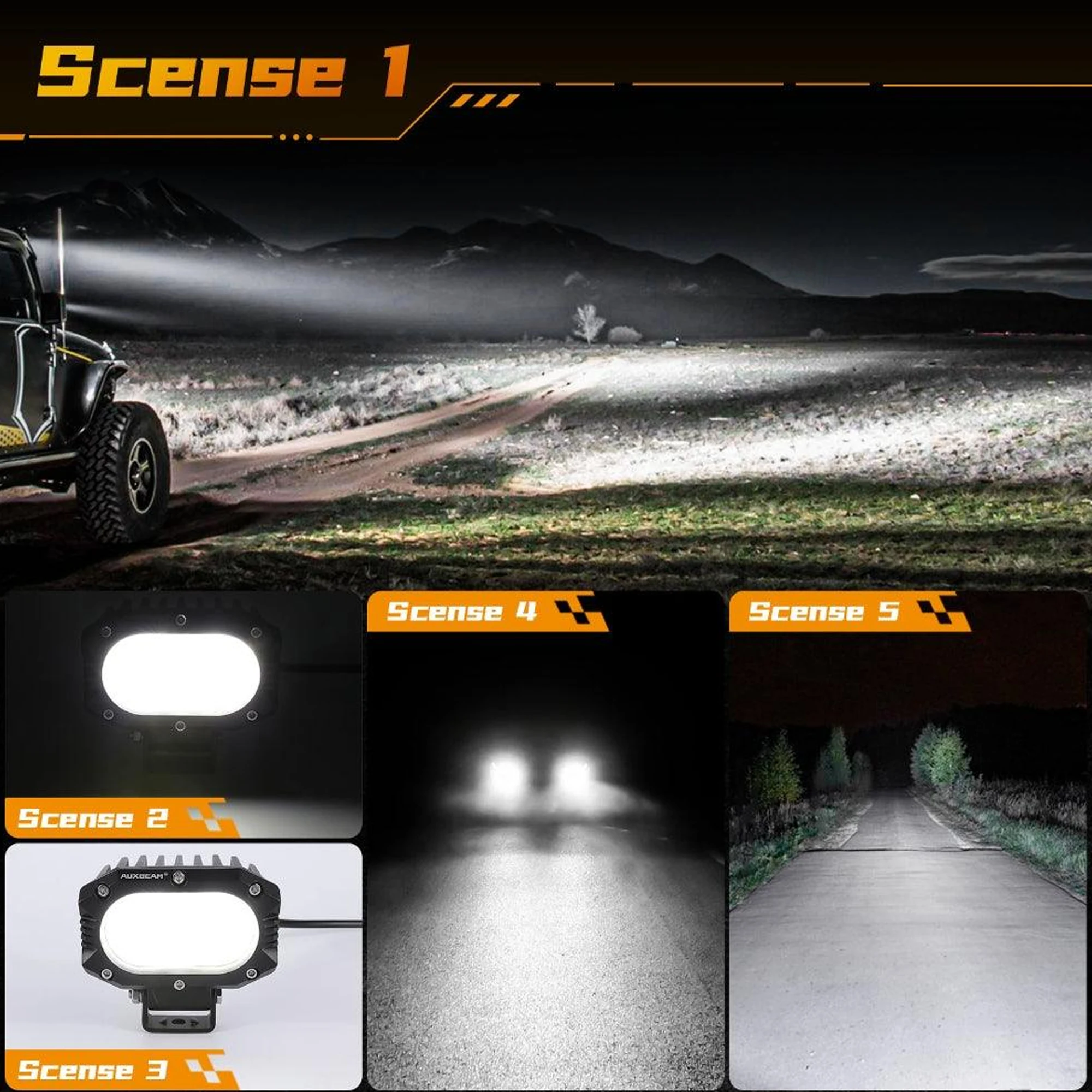 Universal Auxiliary Lights: Fit for all 9-30V DC vehicles and boats. The led light pods can be installed in any location and any kind of cars, Off Road Vehicles, ATVs, UTVs, SUVs, Construction Vehicles, Farm Vehicles, Trucks, Motorcycles, Buses, Boats, etc. Great for fog lamps, ditch lights, rear work lights, driving lights, headlights, work lights, off road lights, backup reverse lights, search lights and more.