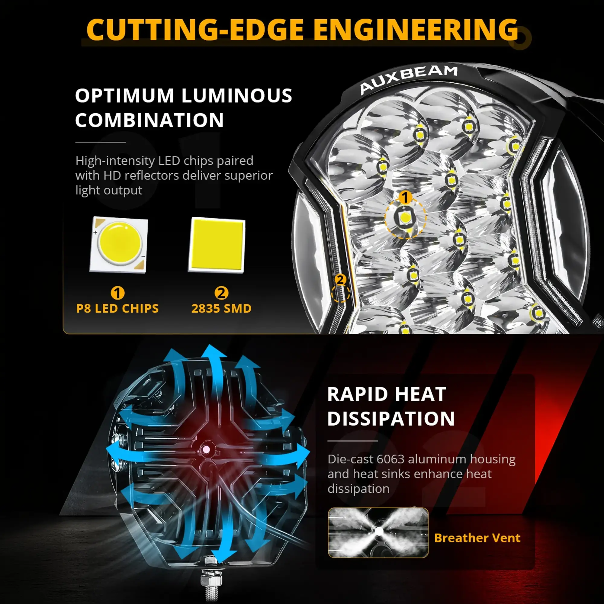 Side Shooter Design: Designed with dual side lights to work together with front spot light. Light coverage to clear darkness and potential hazard, increasing your driving safety.
