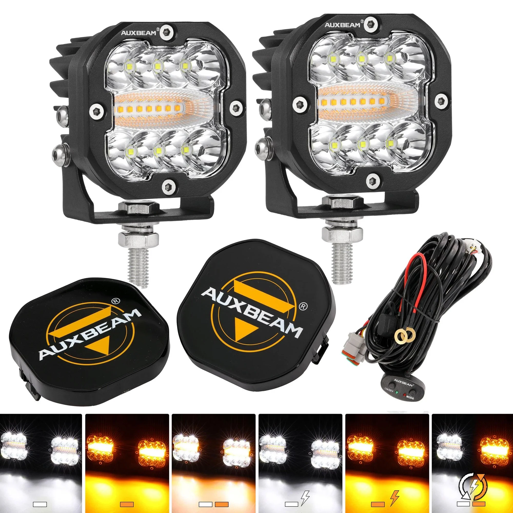 ★The amber white 6 mode light with memory function and synchronization function. Switch between 6 driving modes through remote control.
